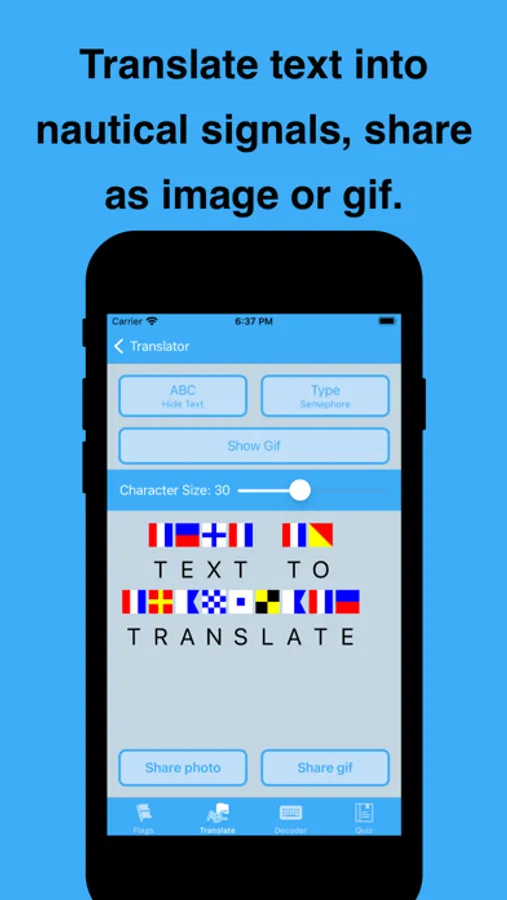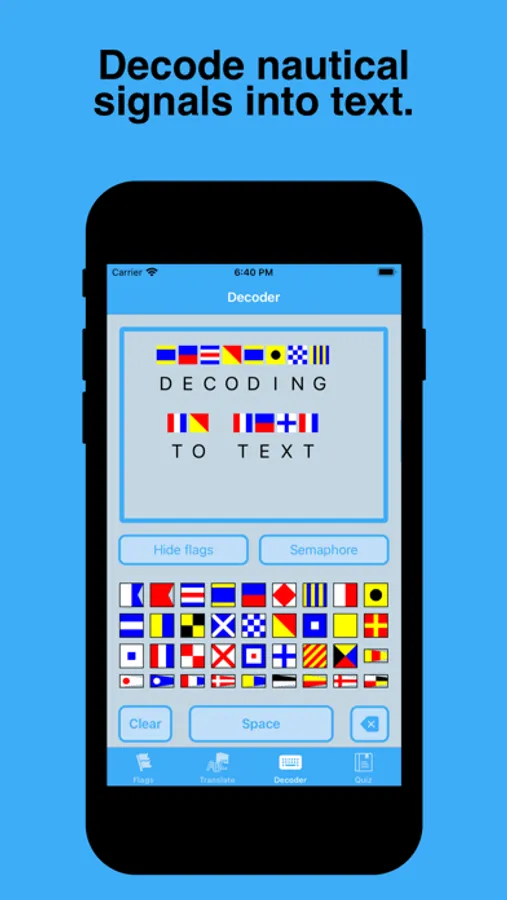 ICS Academy is an all around maritime signal reference app. The International Code of Signals (ICS) are an international system of signals and codes for use by vessels to communicate. Quickly look up the meaning of flags, multi-flag and semaphore signals. Test your knowledge with a quiz. Translate text into flags and save the translation as an image or a gif.