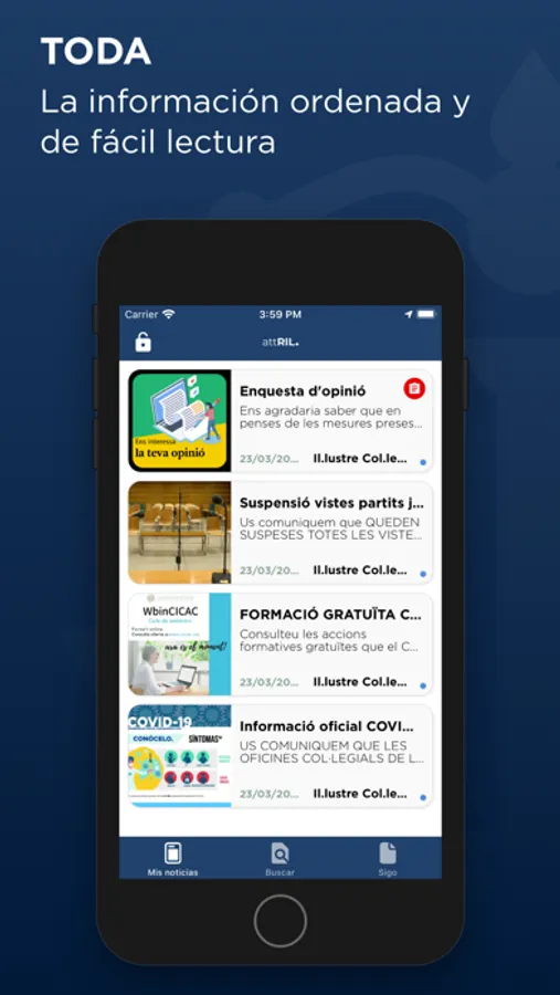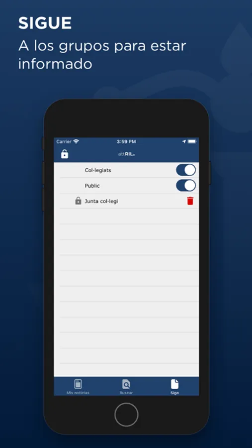 Todos los usuarios que quieran formar parte de attRIL tendrán que subscribirse a los diferentes canales abiertos, algunos de los cuales requerirán de un código de acceso que tendrá que facilitar el Colegio de la Abogacía de Lleida.