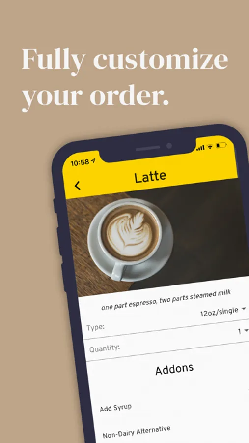 Build your perfect meal or drink with easy-to-navigate menus and full customization options.