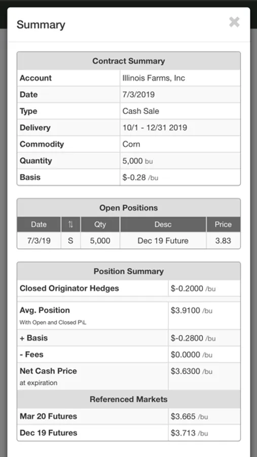 Track scale tickets, view contracts, settlements, historical futures markets, monitor futures markets, cash bids, and even set up price alerts to notify you when to sell at profitable values.