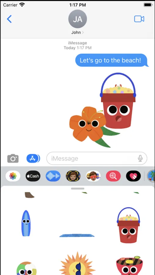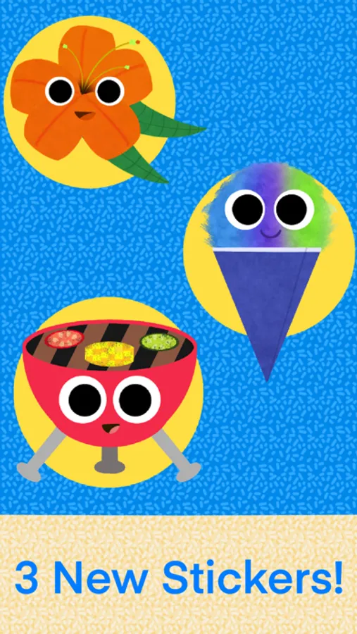 Enjoy the excitement of the beach from home with these animated stickers, including a surfboard, a hibiscus, a sand pail, and many more!