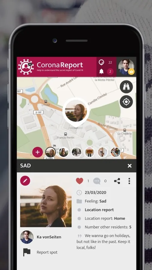 The collected and anonymized data from the reports will then be shared on the CoronaReport platform enabling you and other citizens to see first-hand accounts about how people are feeling and experiencing the impact of coronavirus. You can choose how much information you want to contribute to your reports and if you want to connect with others to share experiences. By working together citizens can build a real-time and vivid picture of how coronavirus is influencing the way people live and work. For example, we do not know the extent to which countermeasures like social distancing are being practised and how this, and other countermeasures, are affecting people’s well-being. Find out more about the project on the website: www.coronareport.global