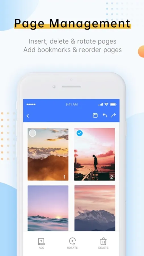 - Adjust PDF image size with pinch-to-zoom gesture.