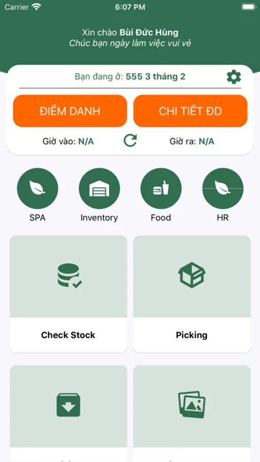 - Các chức năng liên quan đến hệ thống công ty như: Inventory, S.P.A, HR, Attendance