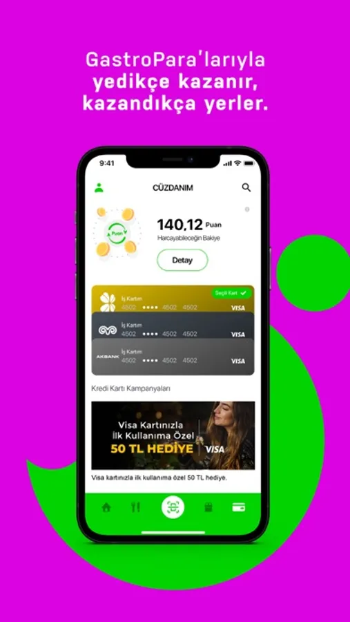 Her harcama işleminde, GastroPay hesabınıza puan yükler.