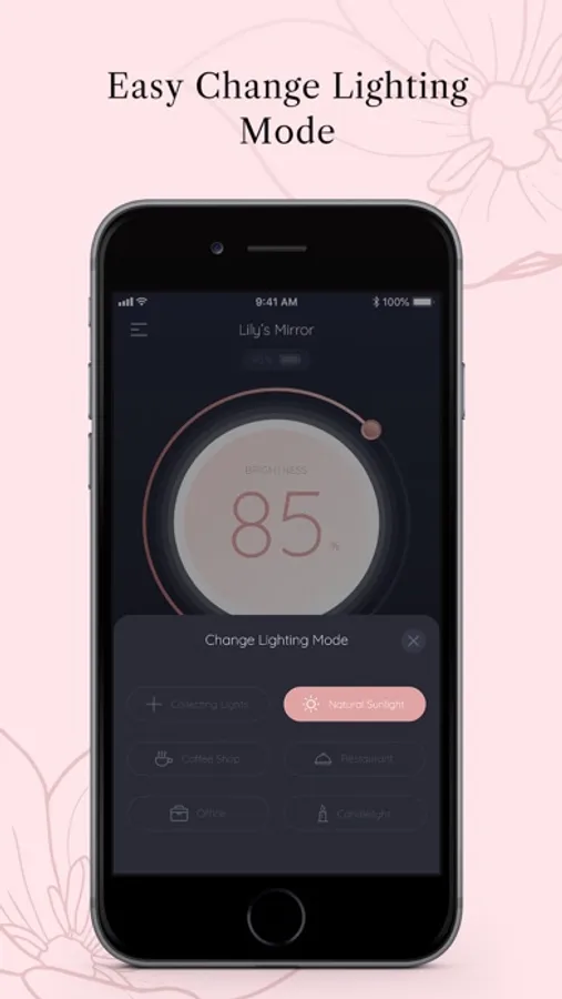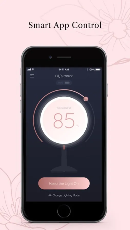 On the main interface of Glamirror app, you can adjust the brightness of the mirror by simply moving the control bar around the circle, so you will find the perfect light when putting your makeup.
