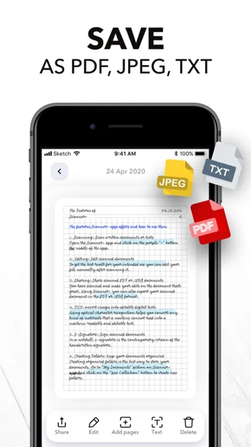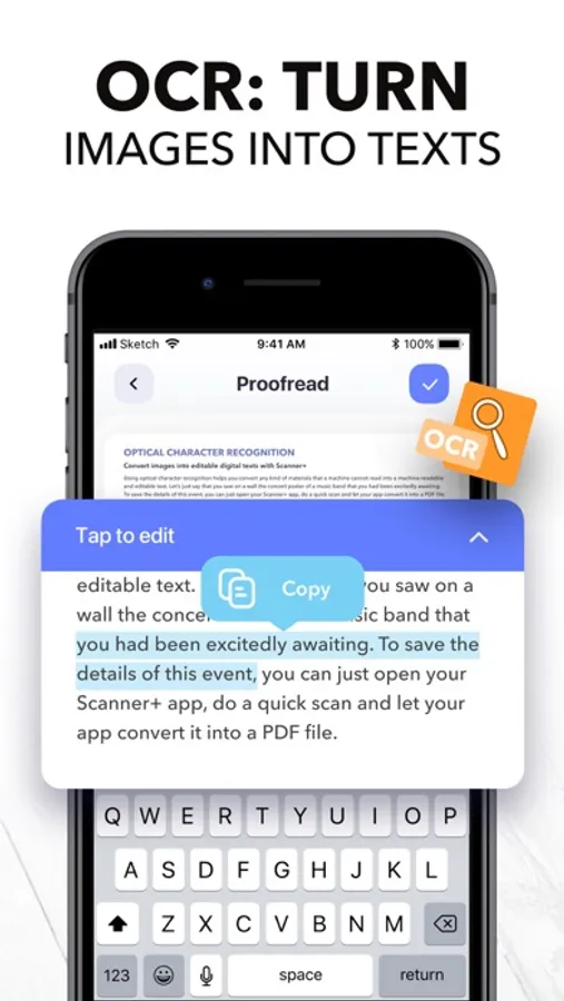 Recognize texts from any scannable object with the OCR text scanner mode. And yes, you can even edit handwritten texts with Scanner+!
