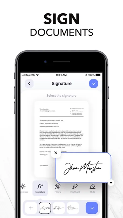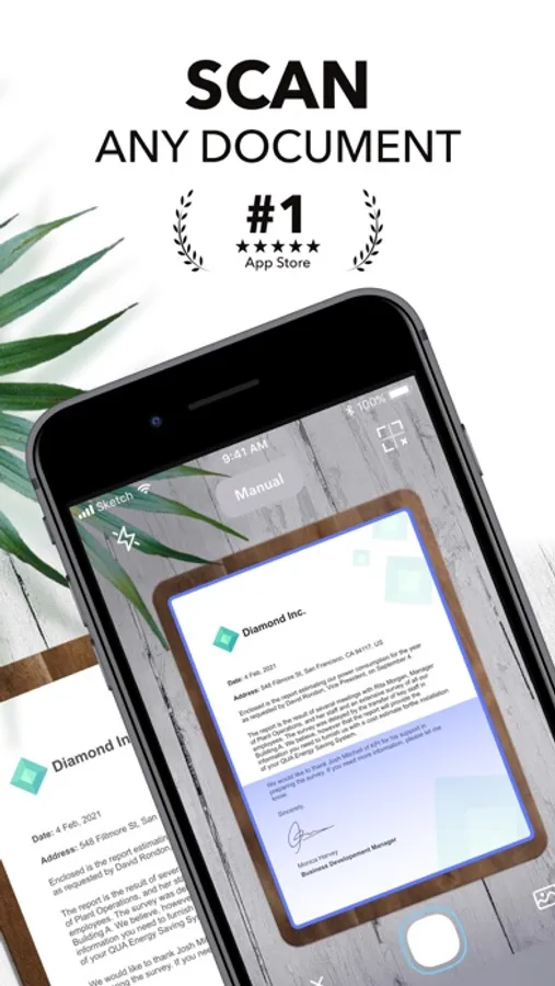 Scan any paper with your iPhone's camera: the Scanner+ app will automatically recognize the edges of your document, enhance it, and give you a perfectly scanned copy that's ready to share on your favorite platform!