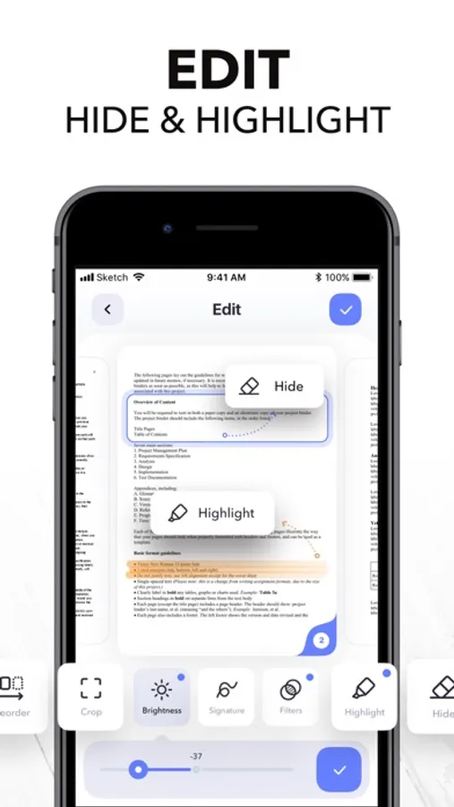 Highlight important parts of your documents with Scanner+ doc scanner! Very useful while studying from your scanned textbook!