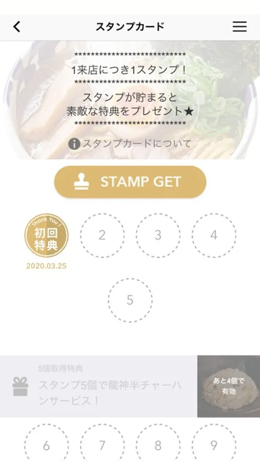 ご利用の際にアプリをご提示ください。アプリ内にスタンプが貯められます。
