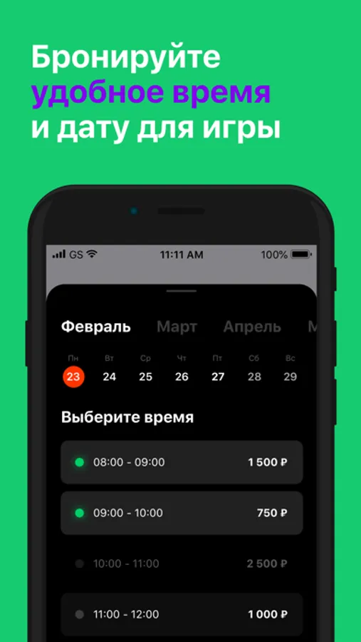 Выбирайте нужную площадку, подходящие дату и время, а затем оплачивайте аренду прямо в приложении!