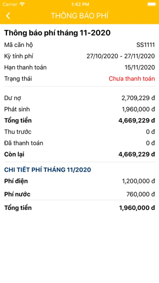 - Cư dân xem và tra cứu thông tin công nợ liên quan.