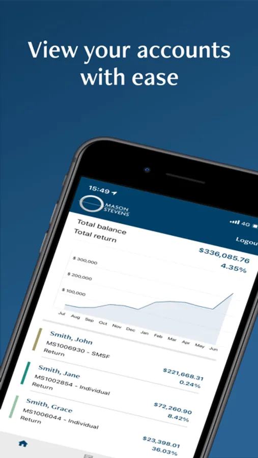 You must have an active account with Mason Stevens before you can access the app. Login credentials are provided when you open your account.