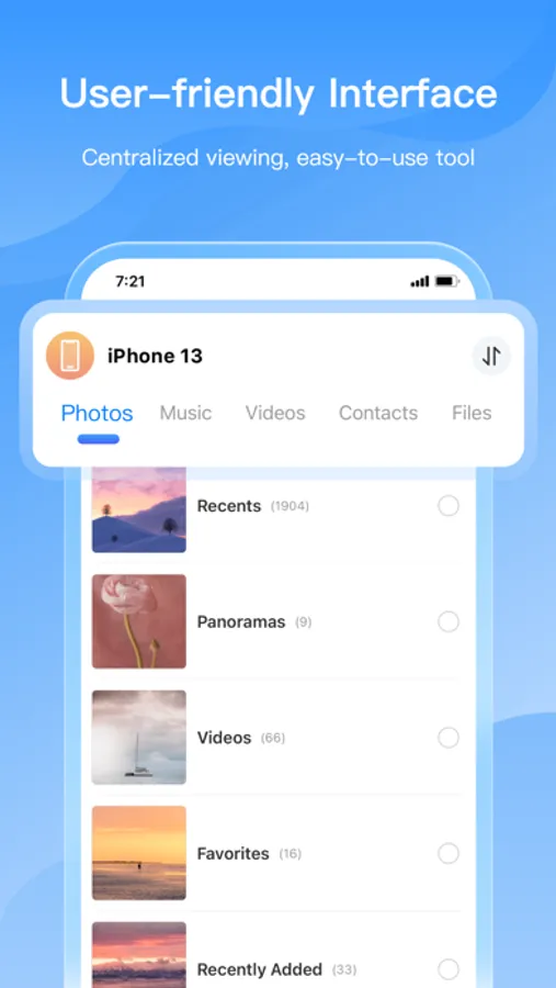 【Efficient: 】 Centralized management and access to all data on your phone, so you can easily select the files you need to transfer with one click!