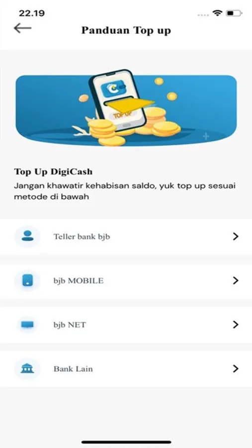 Layanan bjb digiCash menyediakan layanan uang elektronik berbasis server bank bjb dengan keuntungan memberikan kenyamanan dalam melakukan transaksi secara real time kapan dan dimana saja dengan menggunakan smartphone bagi nasabah bank bjb maupun bukan nasabah bank bjb.