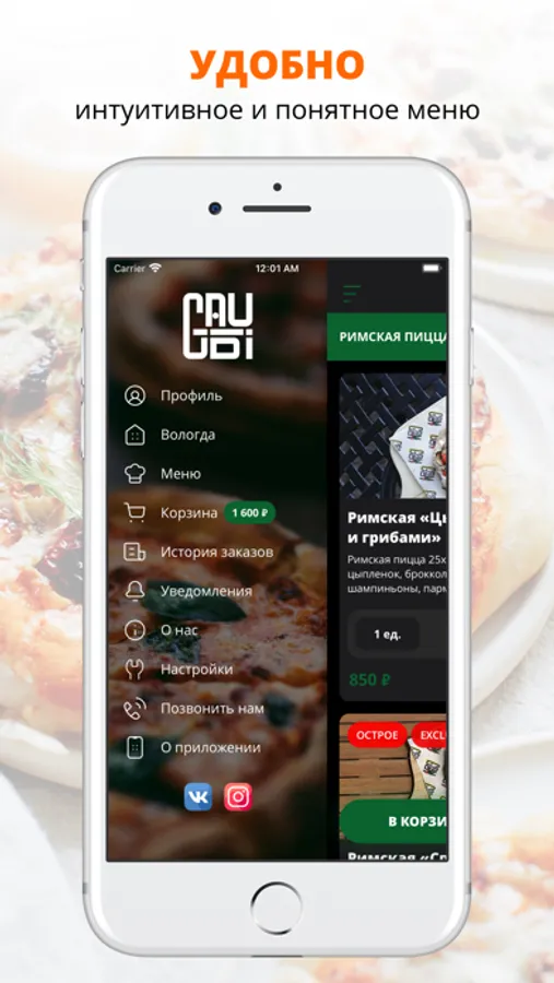 посмотреть меню и совершить онлайн-заказ;