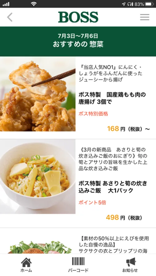 食品、お惣菜、ビール、お酒など、期間限定のおすすめ商品をアプリで見ることができます。