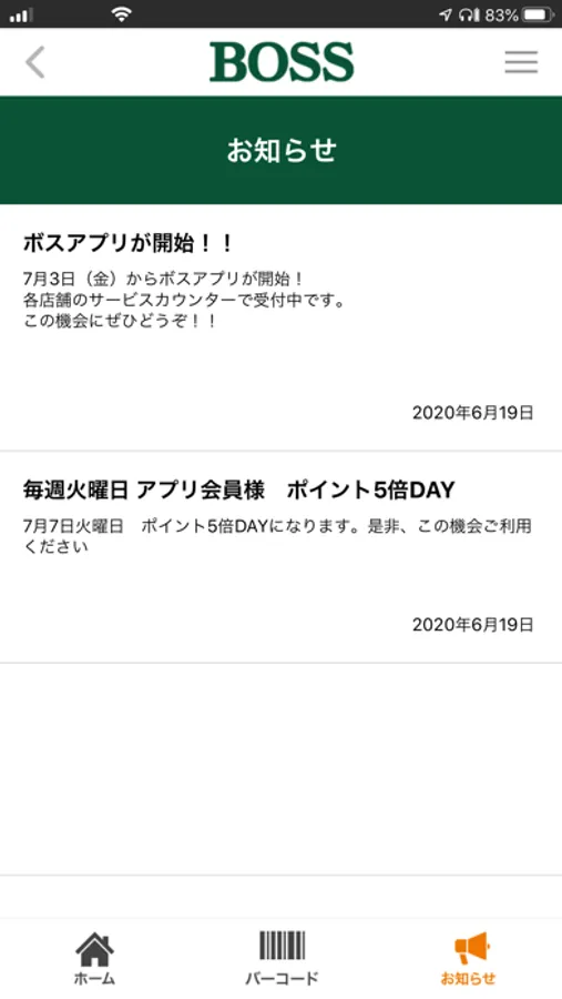【BOSS会員アプリ】