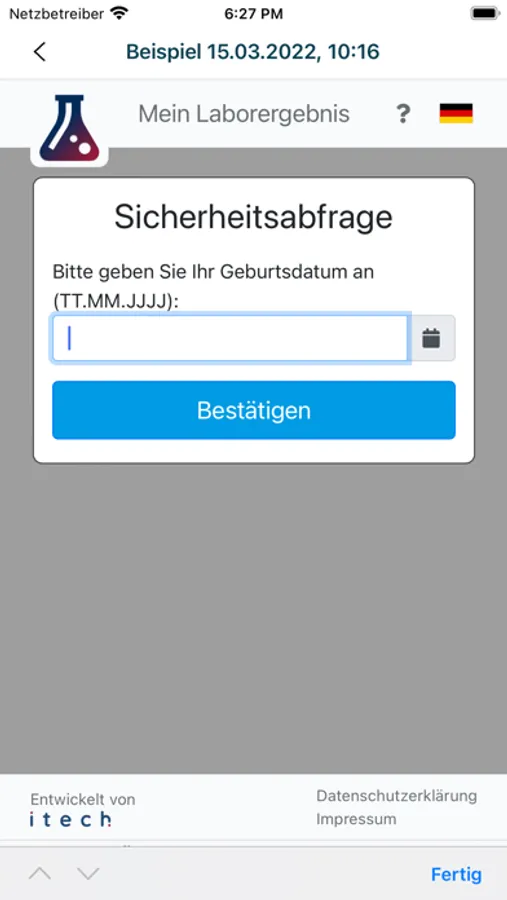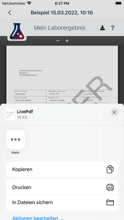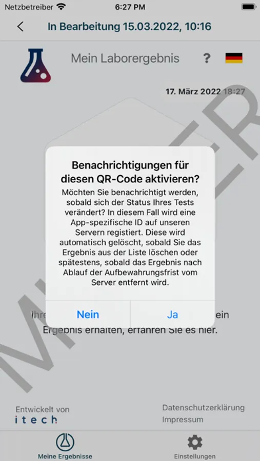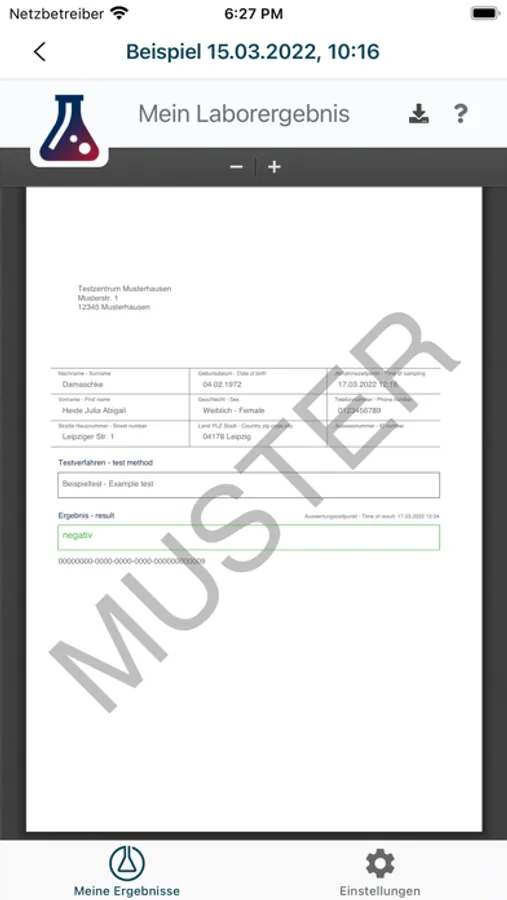 Im Anschluss können die Getesteten den QR-Code einfach mit dieser App scannen, um sich über den Verlauf ihrer Untersuchungen zu informieren, oder die UUID manuell auf www.mein-laborergebnis.de eingeben.
