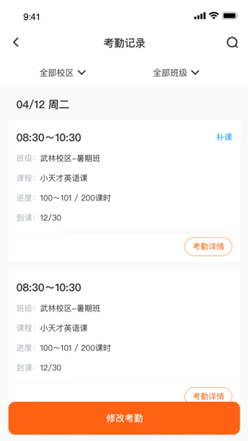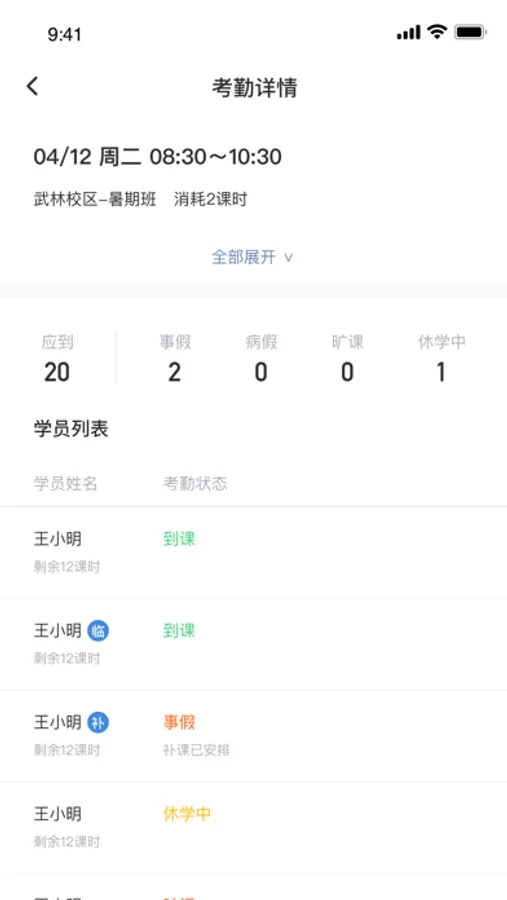 产品针对线下的学员考勤(支持自动消课,补课灵活),老师管理(老师入职,老师教学,老师异动),学员异动(转班,转校)等各种业务场景进行深入挖掘,以保障班级,学员,课时,异动(转班,转校,休学)各种数据精确;