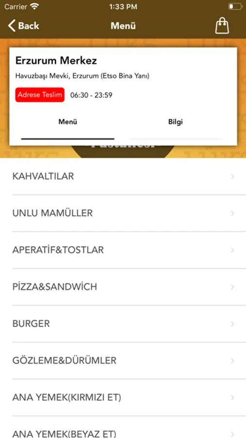 * Menümüzü inceleyin.