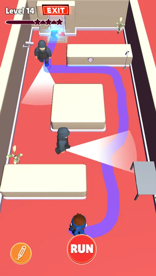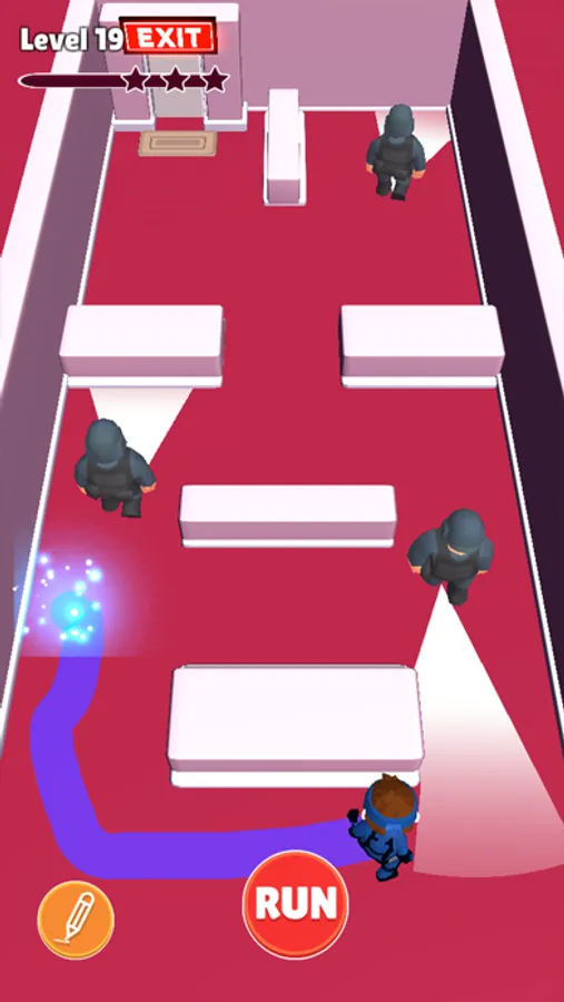 Draw your path, and kill the guards. It's getting hard to kill them all at once and get 3 stars.