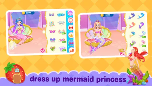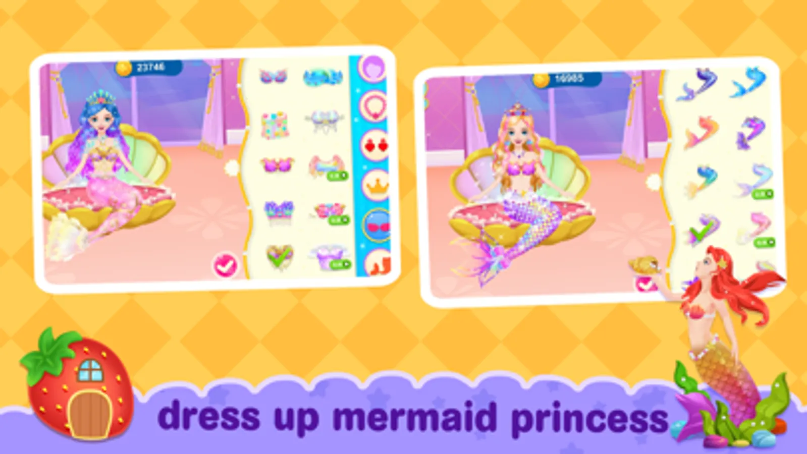 Choose fabulous accessories, dress, and tails for the mermaid princess.