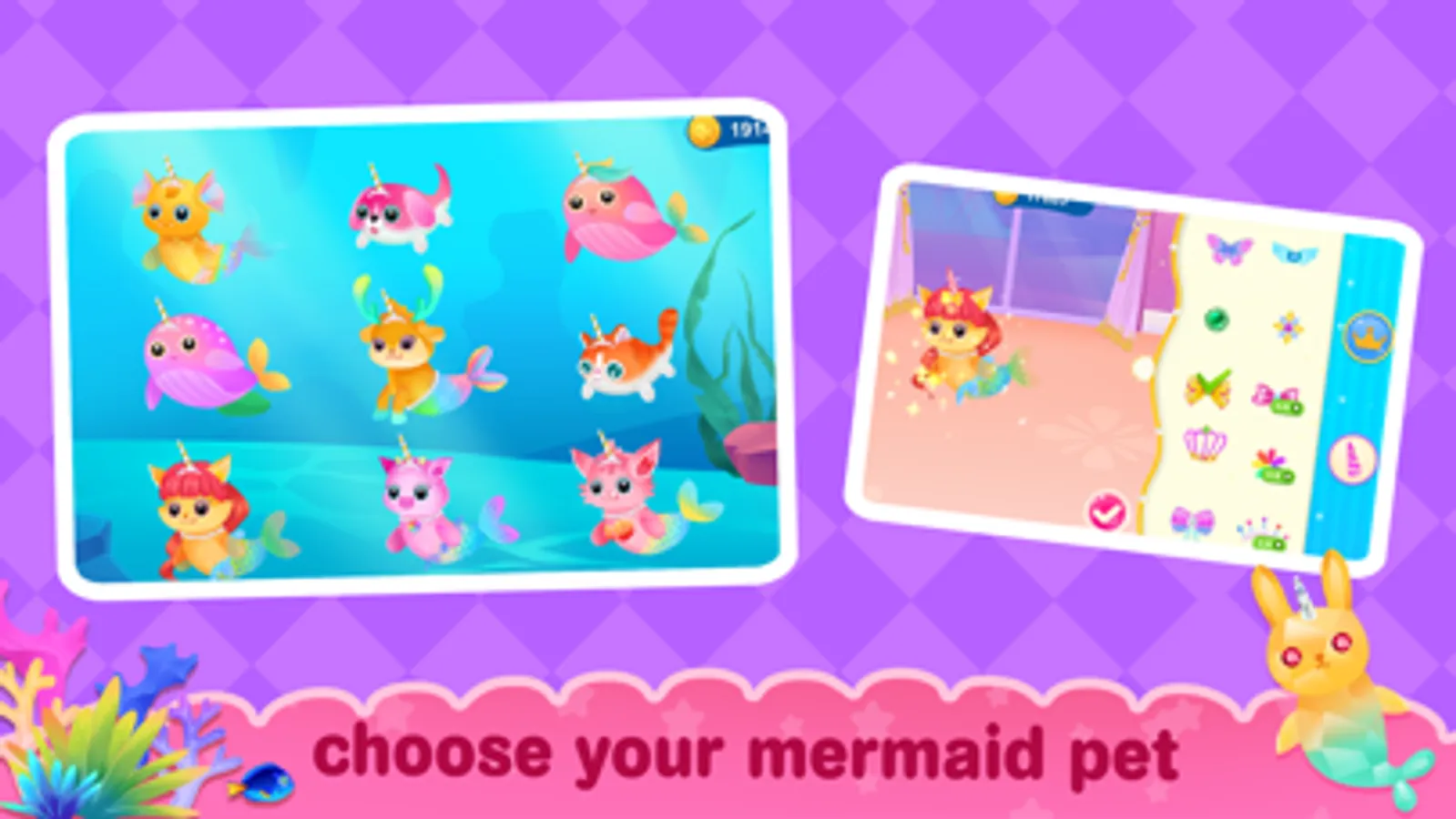 9 mermaid pets are prepared to keep the princess company. Choose the best pet friend for the princess. Choose your favourite horn and magic mark for your pet.
