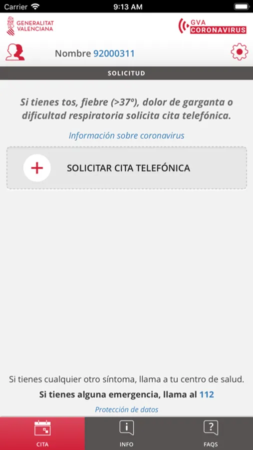 Aplicación móvil oficial de la Conselleria de Sanitat Universal i Salut Pública para solicitar cita con tu centro de salud en caso de presentar síntomas clínicos compatibles con infección por COVID-19.
