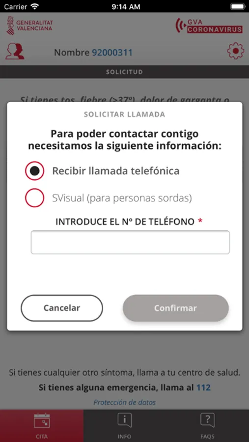 Las citas a través de esta App están dirigidas a los casos posibles de infección COVID-19.