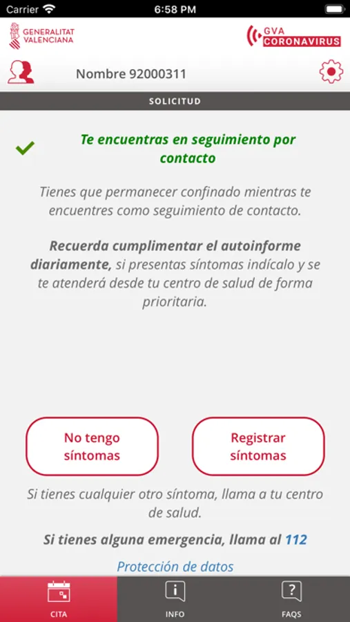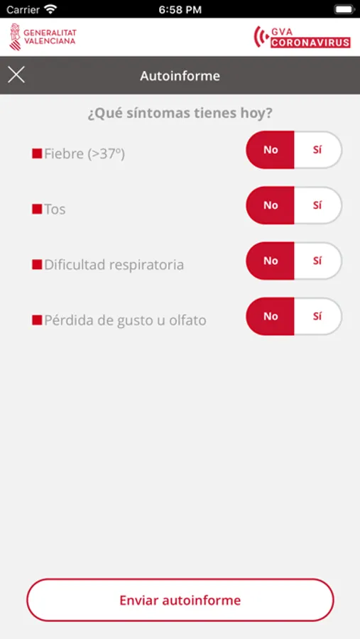 La Conselleria de Sanidad Universal y salud Pública es la responsable y autora de la información que se muestra en la aplicación, además, garantiza la privacidad y protección de tus datos (http://coronavirusautotest.san.gva.es/proteccion-datos-es.html). Asimismo, la Conselleria garantiza que se almacenará y utilizará la información personal de un modo suficientemente seguro, durante el tiempo necesario y solo para proporcionarte los servicios personalizados anteriormente descritos.
