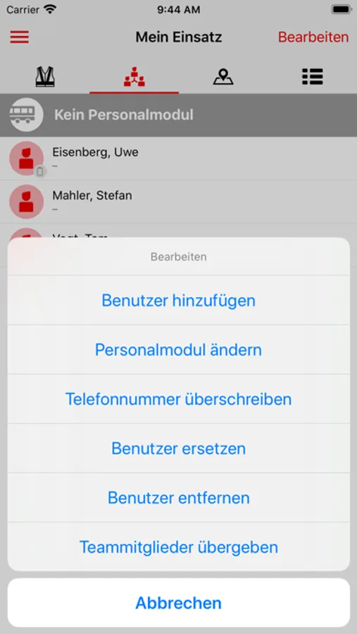 Die dazu erforderliche Ortung des Personals während des Einsatzes übernimmt die App Ortung Infrastruktur.