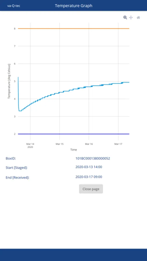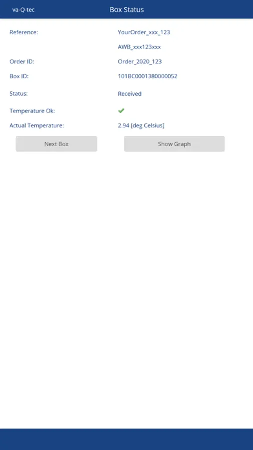The innovative va-Q-nection app is a safe and comfortable way to read out the temperature reports of the va-Q-proof Smart Boxes with your smart device. It guides you through the entire receiving process of temperature controlled shipments: Identification of the smart box, generating the temperature report, upload of shipment data to Track & Control software.