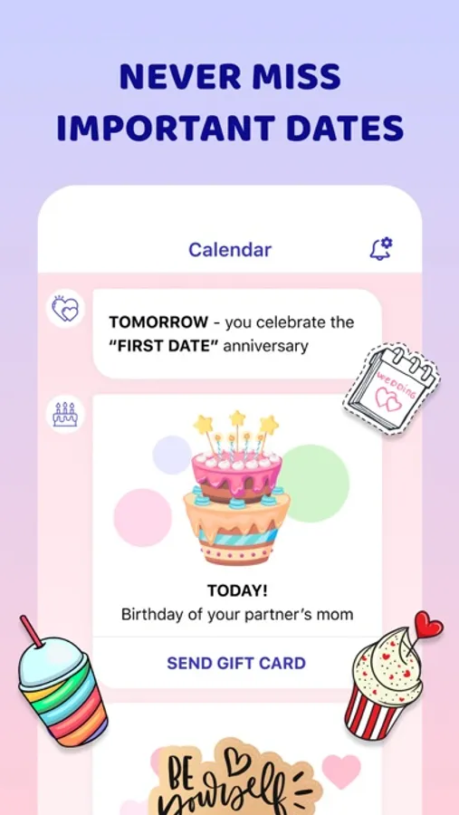 Love Calendar helps you to track important dates of your love. You will never forget to celebrate the anniversary. Moreover, our app will help you to congratulate using awesome cards in just a few taps.