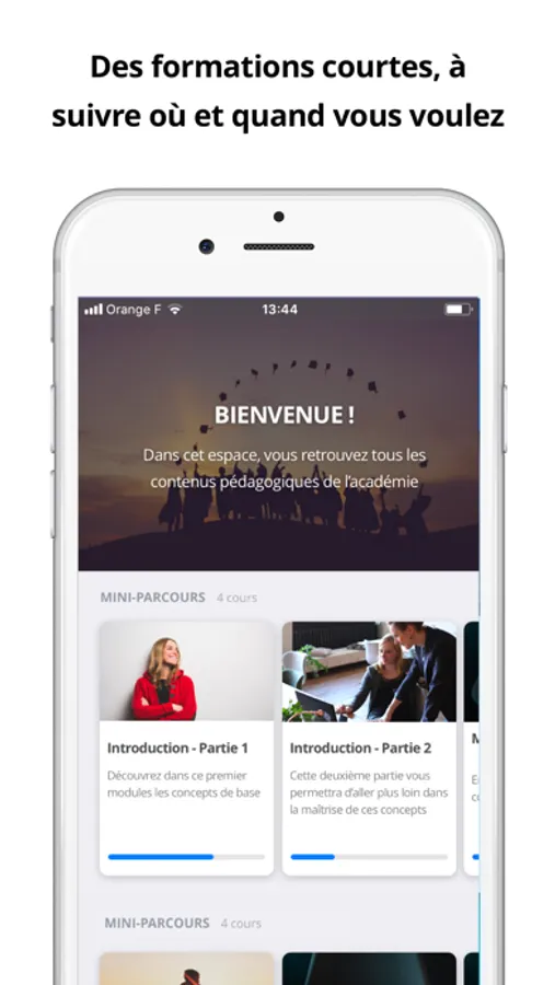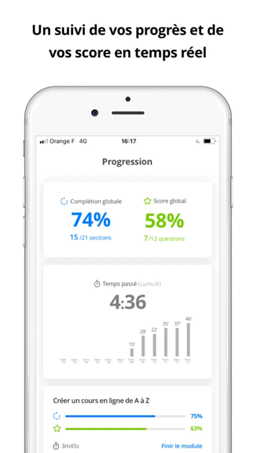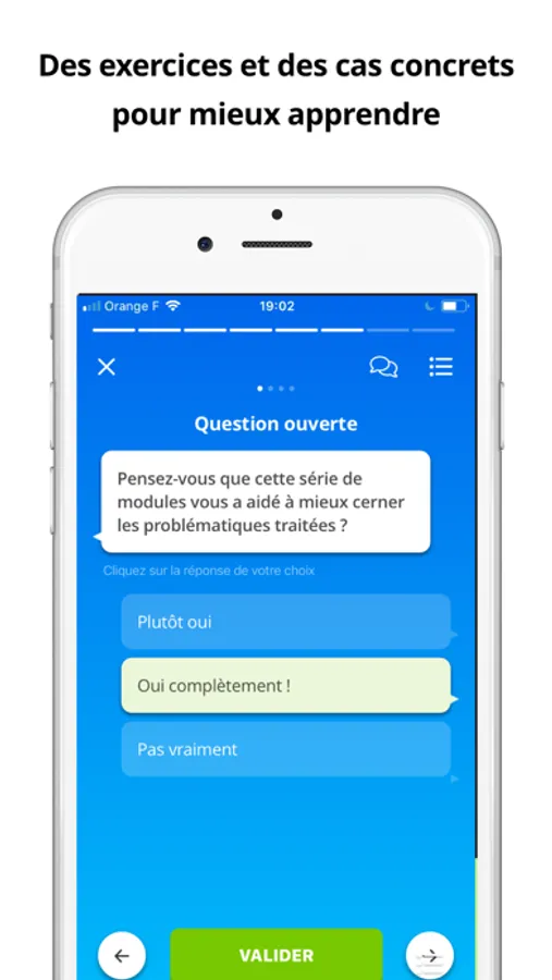 Chaque parcours de formation est composé de vidéos en ligne suivies de quizz et/ou cas pratiques vous permettant de progresser tout au long de votre formation.