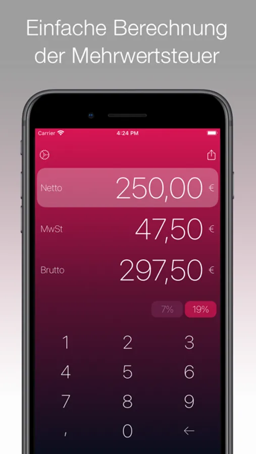 Dieser Mehrwertsteuerrechner ist ein schnelles und hilfreiches Tool für alle Selbstständigen, die sich mit der Umsatzsteuer auf Rechnungen rumschlagen müssen. So hilft diese sehr übersichtlich gestaltete App bei der Rechnungserstellung oder beim Ausrechnen der Ersparnis von umsatzsteuerpflichtigen Unternehmen, die Waren oder Dienstleistungen ein- und verkaufen. Aber auch für Privatpersonen ist die App nicht ganz unnütz. So kann man beispielsweise schnell und einfach herausfinden, wie viel Geld beim Einkauf allein als Mehrwertsteuer in die Tasche des Staates fließt. Zudem kann man diesen Mehrwertsteuerrechner auch einfach als Prozentrechner verwenden und mit beliebigen Prozentwerten spielen, beziehungsweise zwei Prozente unkompliziert miteinander vergleichen.