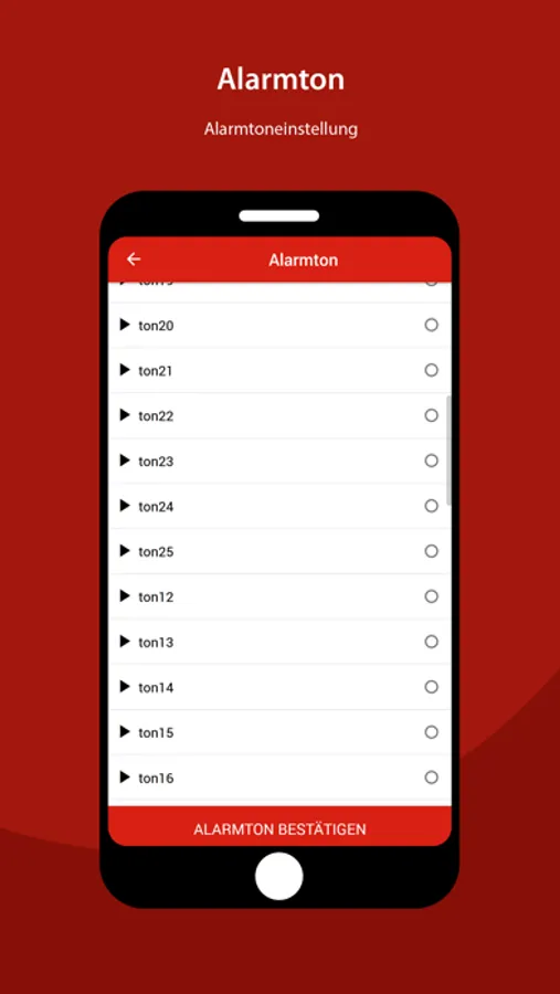 - Sie können aus einer Auswahl von circa 20 Alarmtönen wählen