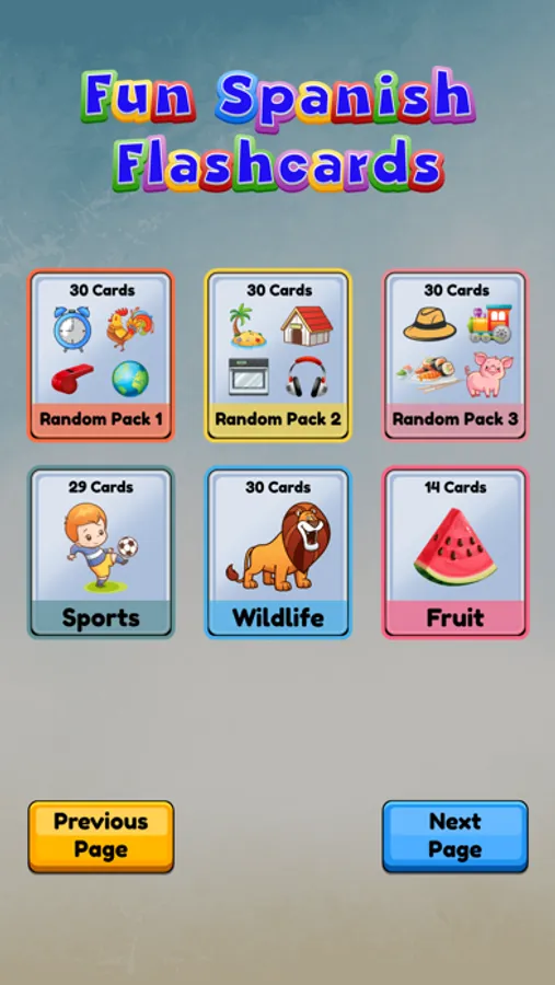 Fun Spanish Flashcards Pro contains words from 50 categories: