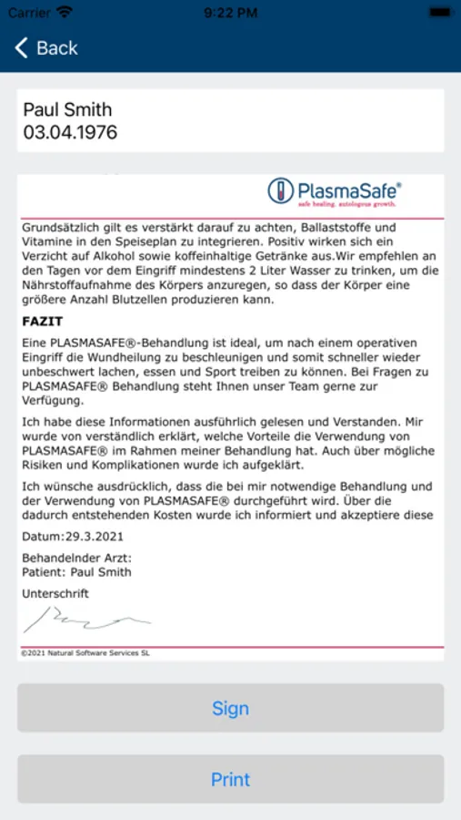 The app provides the user with patient information and consent-form, indication-related user instructions and visualisations This ensures seamless integration of PlasmaSafe® treatment into the practice workflow.