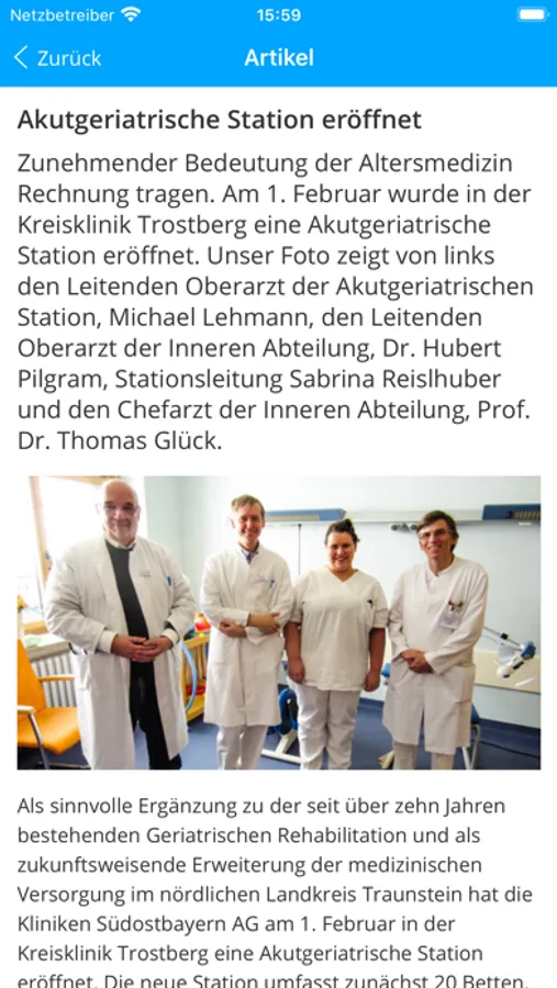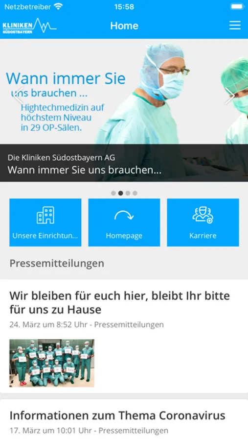 Nie mehr Wichtiges verpassen. Jederzeit, schnell und überall Informationen und aktuelle Nachrichten rund um die Kliniken Südostbayern AG sowie einfache Kommunikation über alle Bereiche – das bietet die App der Kliniken Südostbayern AG. Für Mitarbeiter ermöglicht die App darüber hinaus viele zusätzliche Funktionen und Gadgets. Auch interessierte Mitmenschen und Bewerber bleiben mit dieser App jederzeit und überall up to date.