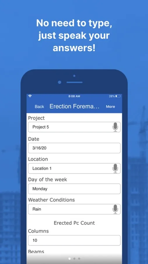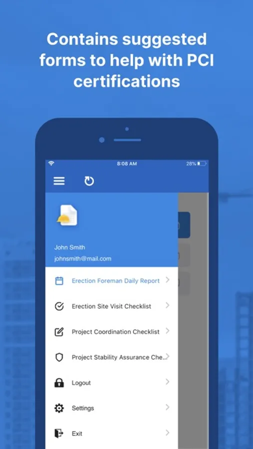 Snappii's Precast Erectors Reporting app contains suggested forms to help with PCI certifications (Precast Concrete Institute)