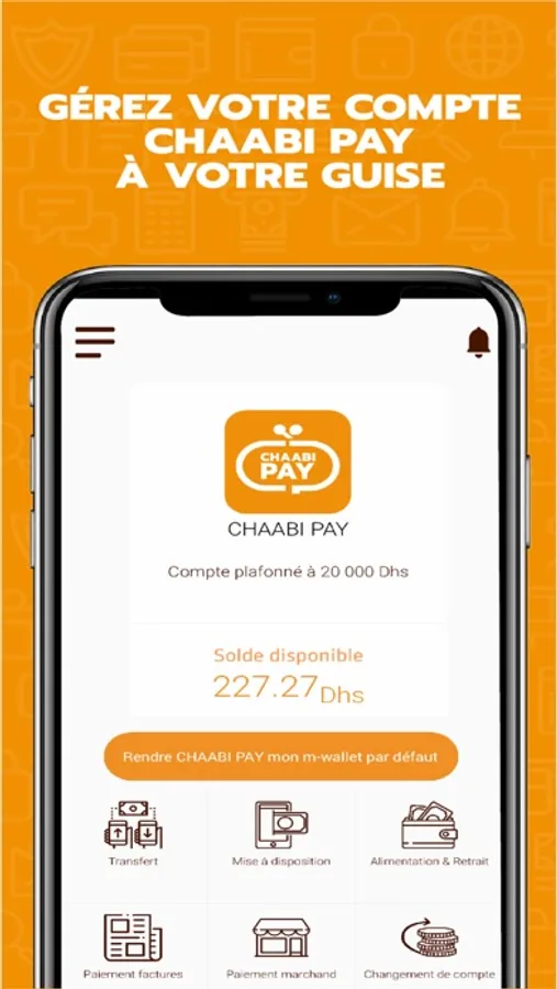 Avec Chaabi Pay, gérez, payez et transférez votre argent en toute simplicité grâce à une application mobile pratique et sécurisée offrant de nombreuses fonctionnalités :