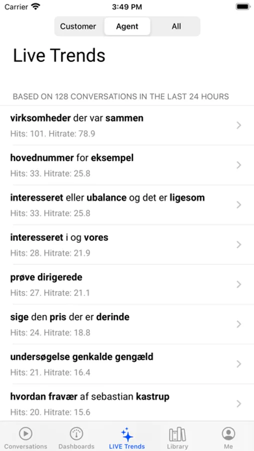 Med bla. Live Trends i app’en kan du nemt følge med i hvad dine kunder henvender sig om lige nu.