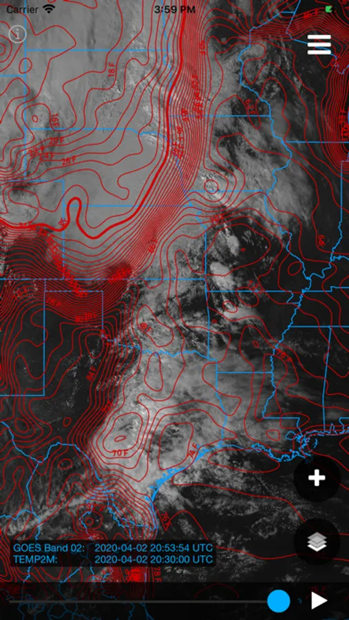 Upgrade to SatSquatch Pro (4.99/mo, 7-day free trial) to overlay vital meteorological information such as METARs, temperature contours, or derived quantities such as convective available potential energy (CAPE) from our custom mesoanalysis. Our mesoanalysis updates at a high frequency (every 15 minutes) and at a fine resolution (grid spacing of ~3km).
