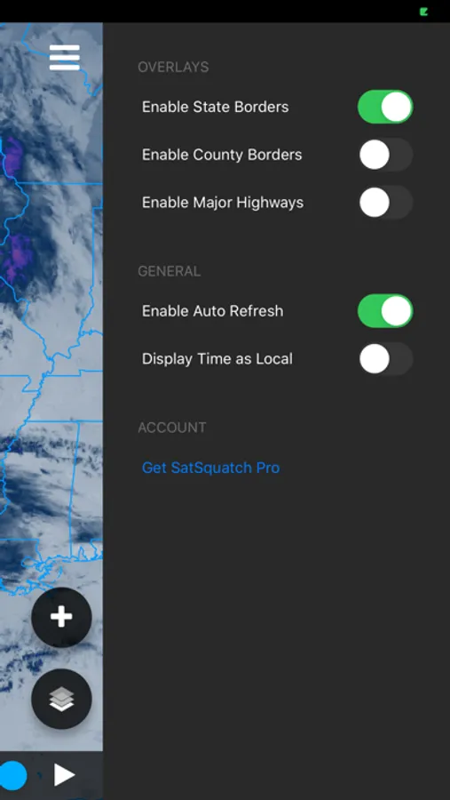 WARNING: SatSquatch will use large amounts of data, especially when animating loops. WiFi or unlimited data plan is recommended for heavy use.