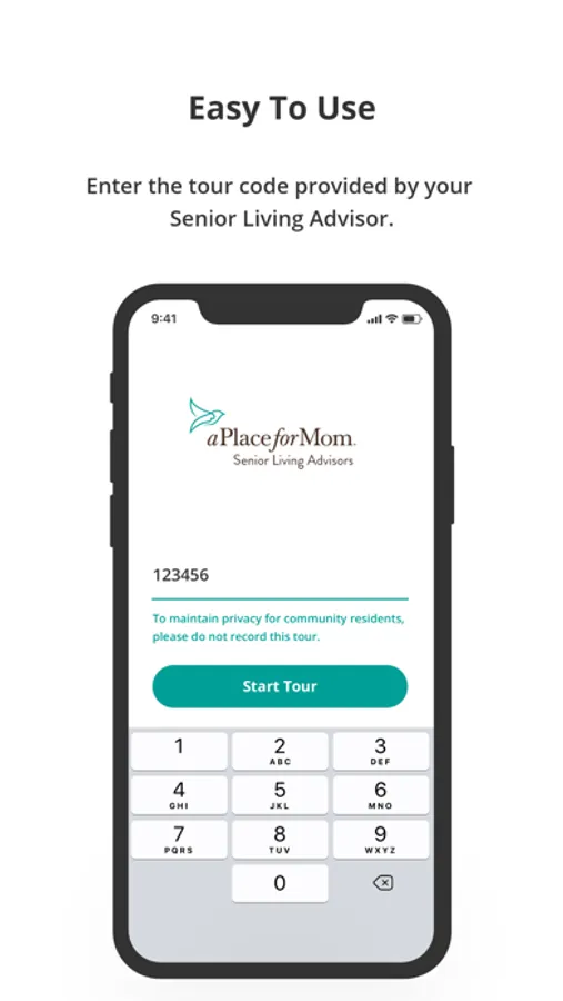 We designed this app for ease of use, and no accounts are required to make a call. Install the app on your iPhone, enter the tour code provided by your Senior Living Advisor, and enjoy the tour experience!