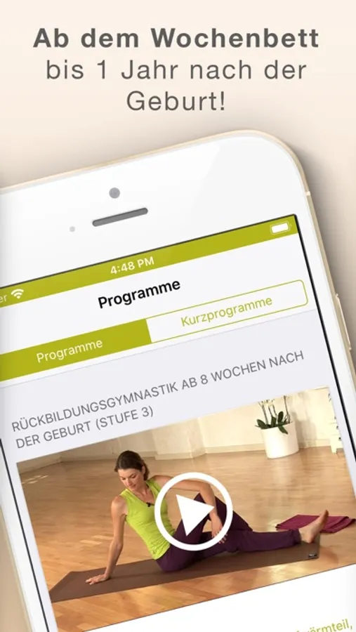Und wenn es mal schnell gehen muss, gibt es Rückbildungsgymnastik-Kurzprogramme! Von Übungen für das Frühwochenbett bis hin zum Programm für Fortgeschrittene ist dies ein Rückbildung-Komplettpaket, was dich ab der Geburt bis zu einem Jahr danach begleitet und fit macht - in deinen eigenen vier Wänden!