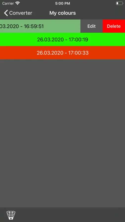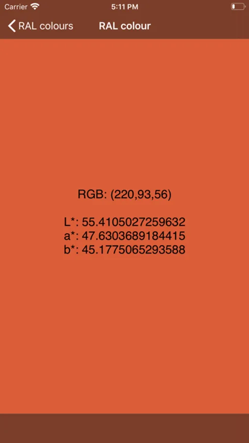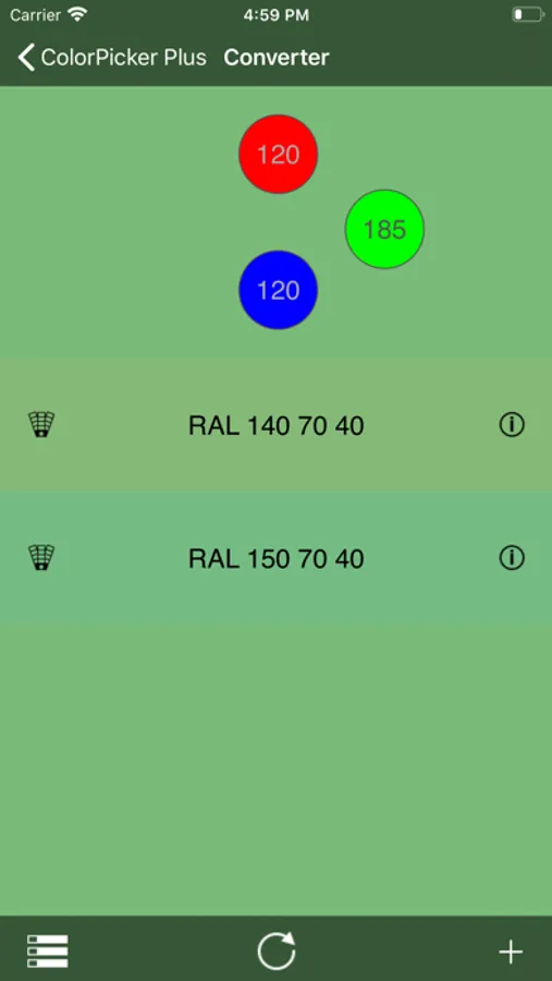 The built-in converter is a powerful function: You can use colour circles to set a colour or enter RGB values directly and the app will determine RAL colours like in a real scan. Of course results of the converter may be saved.