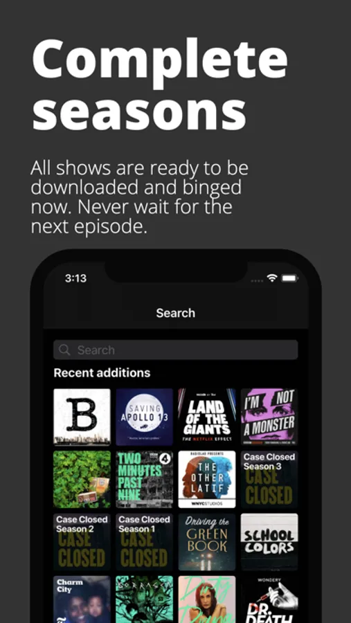 Every show you find in Season is complete and ready to be binged now, so you never have to wait around for the next episode to drop.
