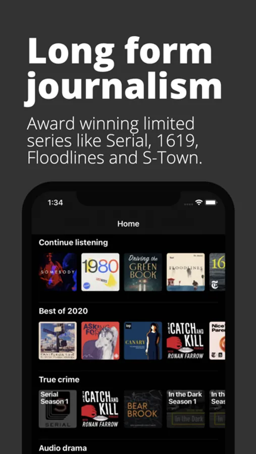 Season only lists long form podcasts that tell one story over many episodes. It can be limited series like Serial and S-Town, or audio dramas like Homecoming and The Black Tapes. No news, sports, pundits or "three dudes with a microphone"-style shows.
